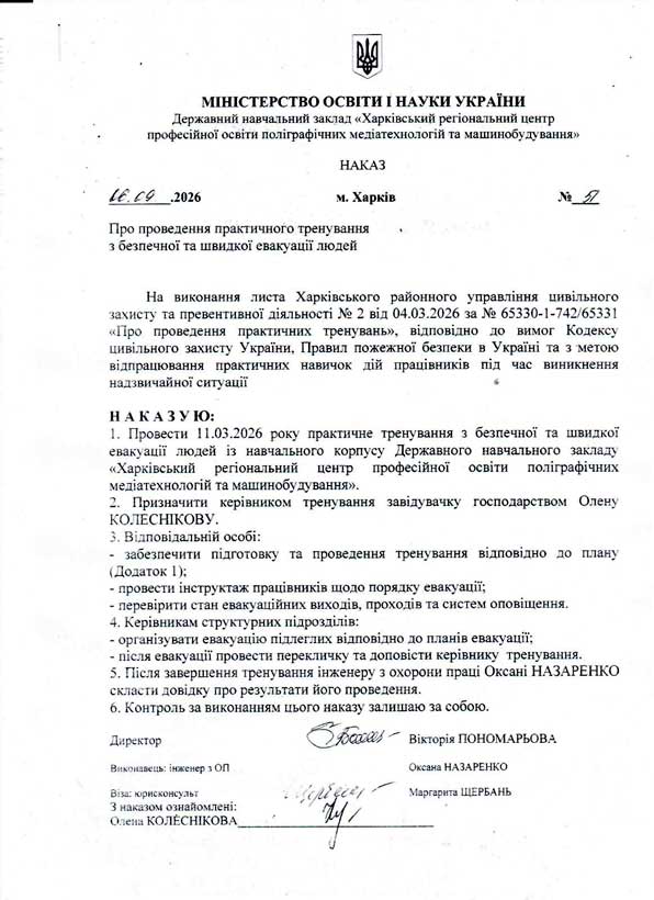 АНАЛІЗ ПРОВЕДЕННЯ ПРАКТИЧНИХ ТРЕНУВАНЬ З БЕЗПЕЧНОЇ ЕВАКУАЦІЇ ЛЮДЕЙ